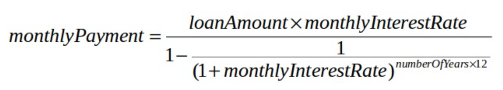 monthlyPayment = loanAmount * monthlyInterestRate / (1